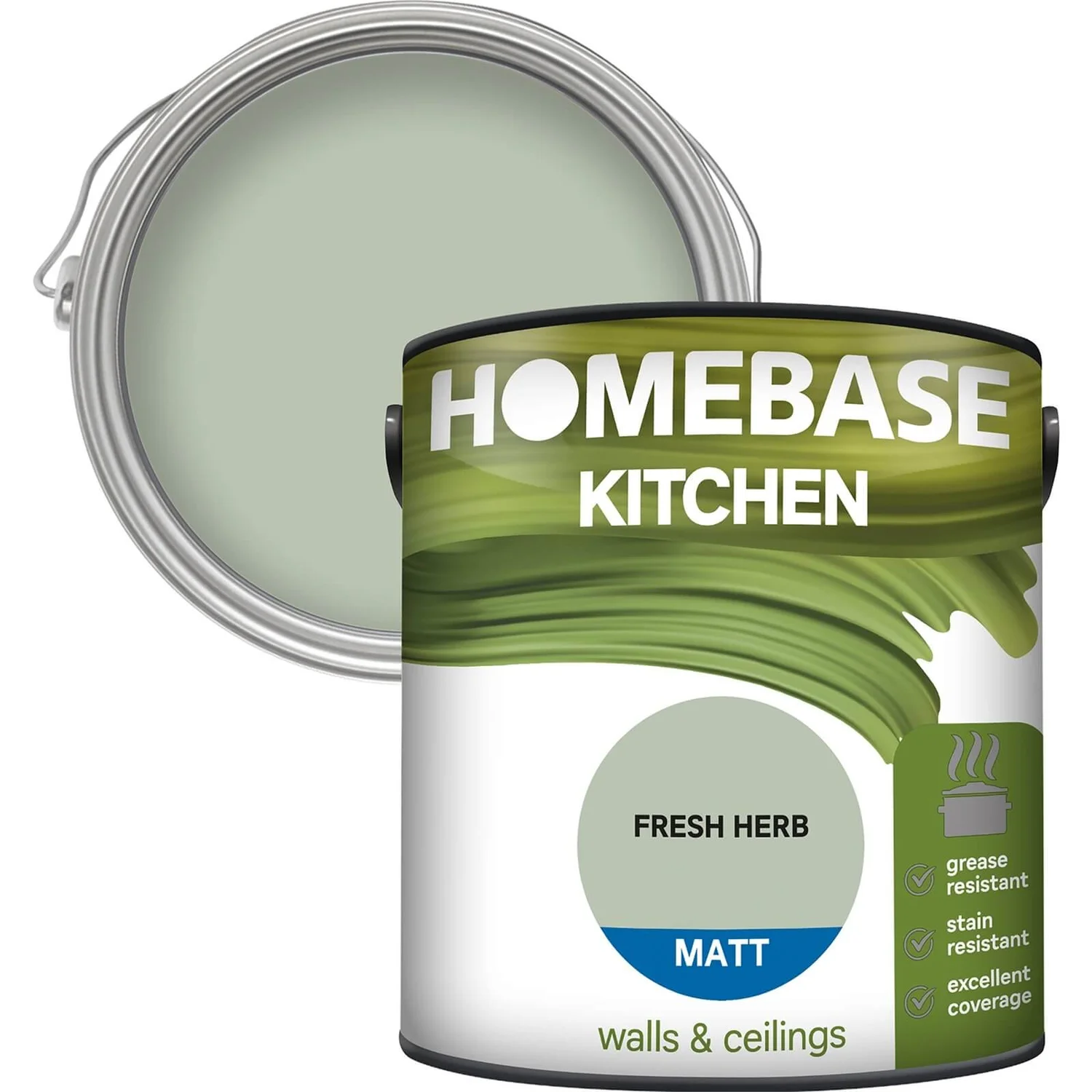 Homebase Kitchen Matt Paint is formulated to be grease and stain resistant. Offers excellent coverage.